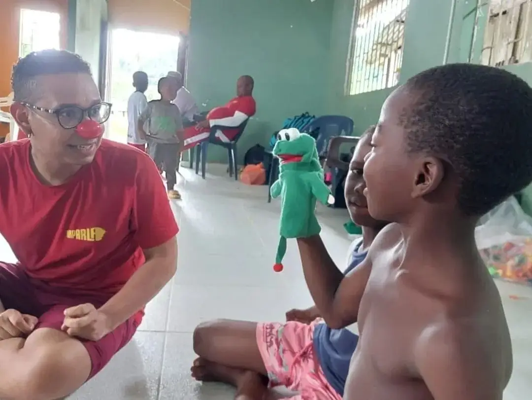 Con La Parla hemos abrazado a las infancias de la Escombrera en la Comuna 13 de Medellín, a las infancias que trabajan recolectando hoja de coca en Timba Cauca, a las infancias en riesgo de reclutamiento en Tuluá Valle, y desde el año 2023, nuestro foco humanitario se centra en las infancias de la selva del Baudó Chocuano. Allí los niños, niñas y adolescentes, enfrentan tomas armadas, minas antipersona, desplazamiento por inundaciones, falta de luz eléctrica y agua potable. Nuestra escuela de teatro viaja en lancha entre cinco y seis horas, desde el ultimo punto en tierra a cuatro horas de Quibdó. De esta forma llevamos formación teatral con enfoque restaurativo, obras de teatro infantil, servicios de cocina comunitaria abierta y acompañamiento a lideres y lideresas culturales.